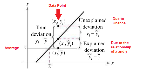 $\sum(y_i-\bar{y_i})^2 = \sum(\hat{y_i}-\bar{y})^2 + \sum(y_i-\hat{y_i})^2$